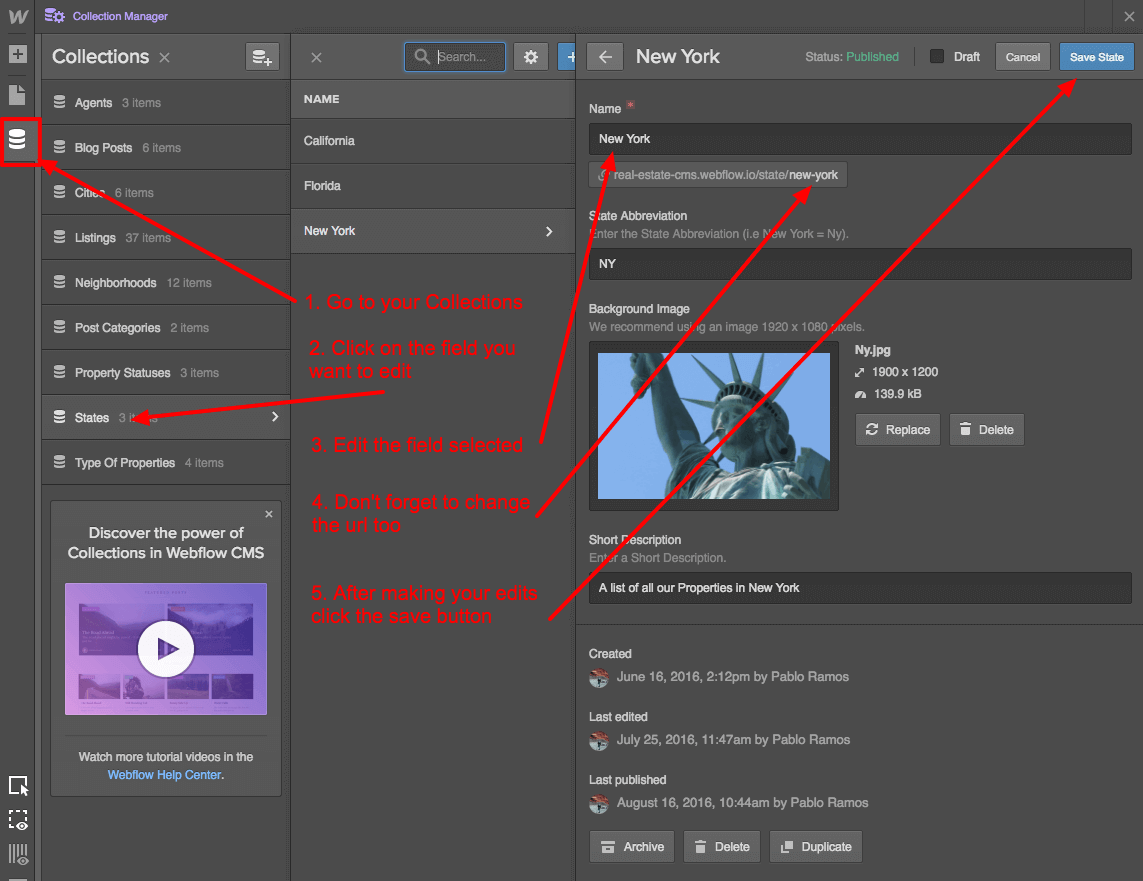 We recommend deleting all the Posts that comes by default in this template, before changing any of the Collection Fileds.